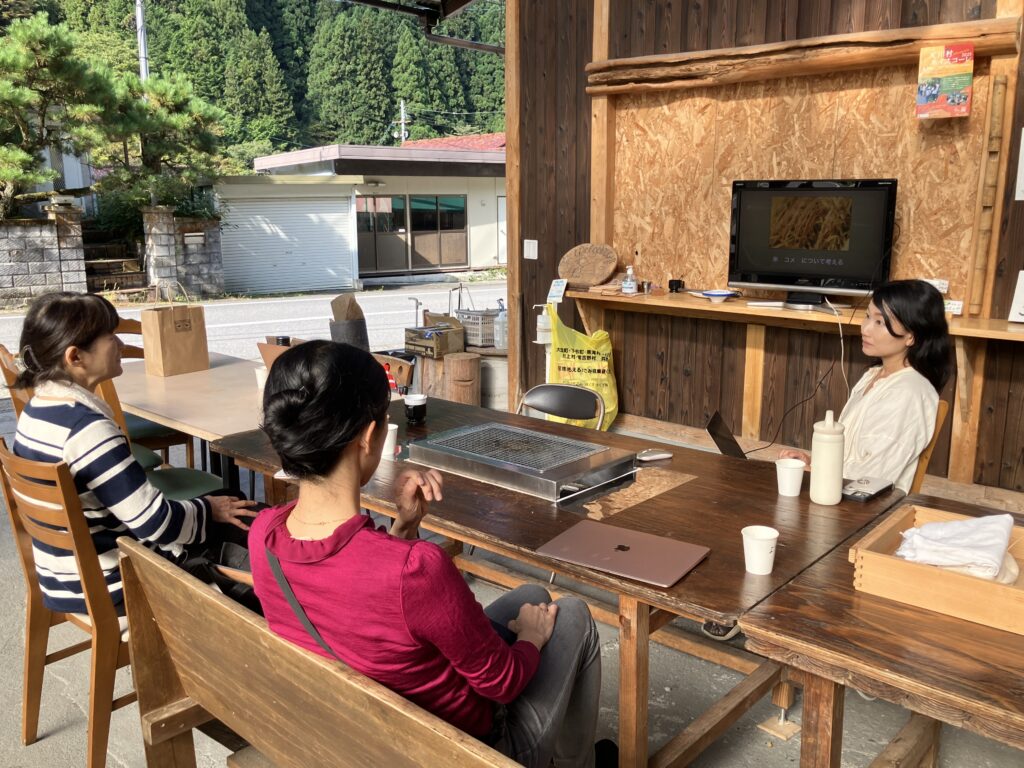 水を「引く」暮らしの仕組みを知り、自分たちの手で自然を守る姿に触れました。その清らかな水で育つ鮎を、塩焼きと唐揚げでいただく贅沢な昼食。午後は上西良嗣さんが収集した写真とお話で集落の歴史をたどりました。そして映画『もったいないキッチン』を観ながら食の循環を考え、天川の味噌鍋で締めくくる豊かな一日。