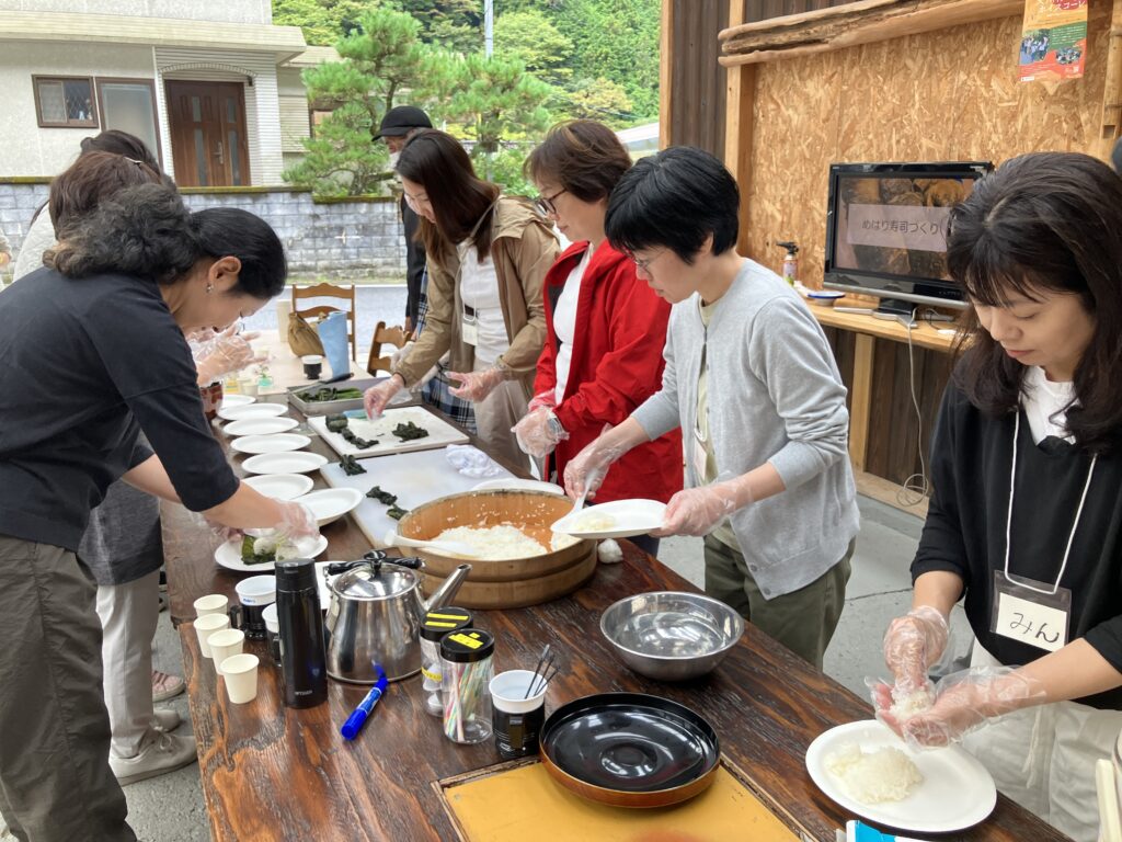 大和屋の修ちゃん・エリカさん夫妻とともに、名水を味わい、天川の水の力を実感。高菜の葉で包むめはり寿司づくりでは、それぞれのスタイルで個性が光りました。午後はスケッチと香りの実験。ありのままを受け取る時間に、心も静かに整います。余白の時間は、参加者のアイデアで洞川温泉探検に。