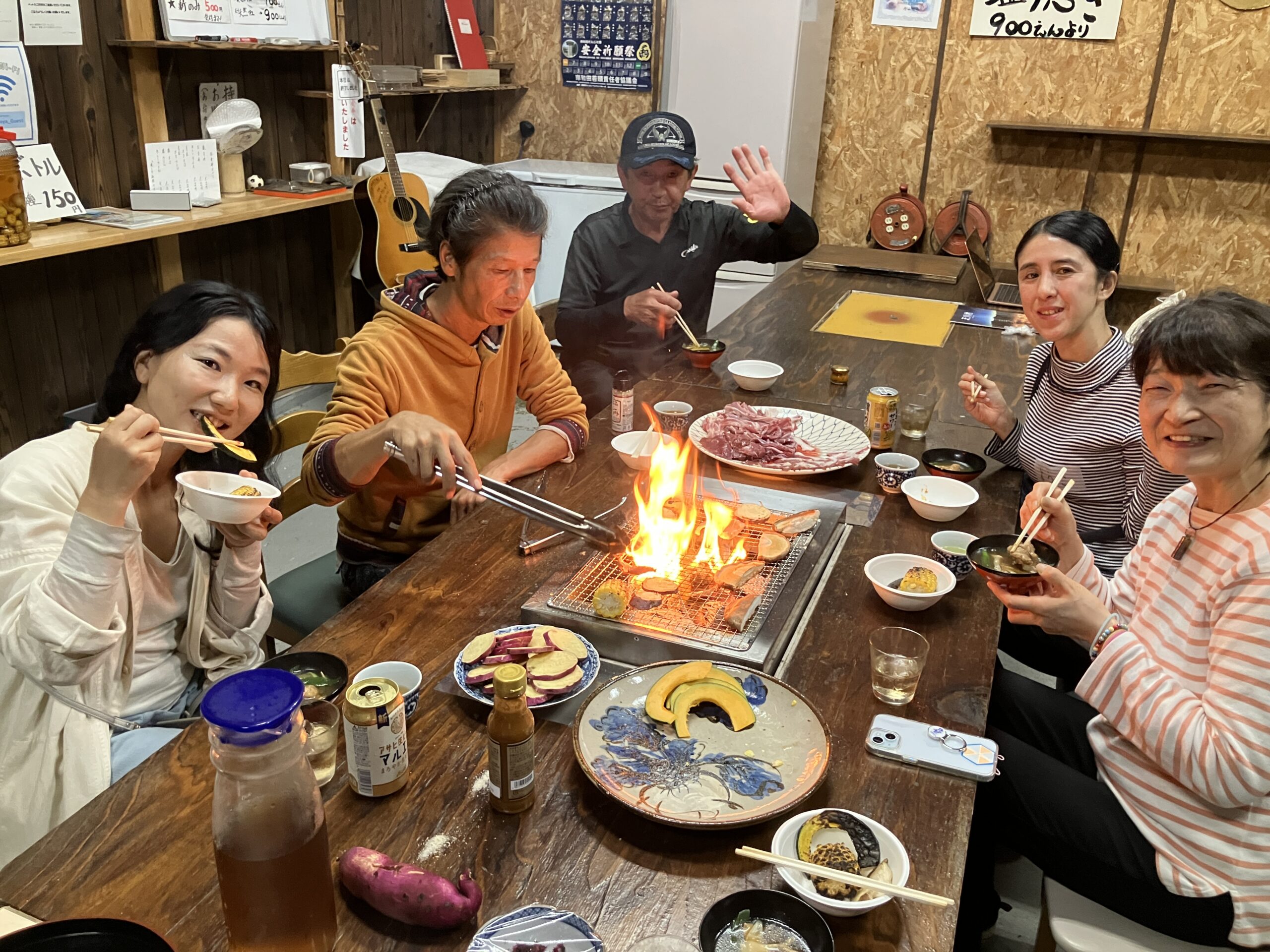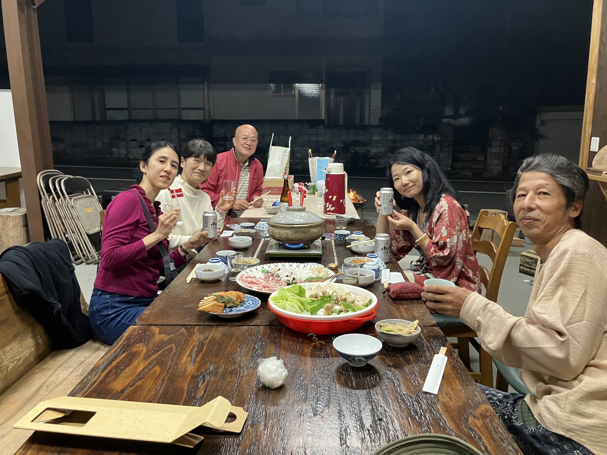 4日目に仕込んだ糀がようやく目覚め、TOYAMA HOUSEで味噌づくり。藤井さん(地域おこし協力隊)も加わり、来春の「味噌びらき」を約束しました。午後は十津川のメンバーの畑を訪れ、野草とともに育つ野菜、シードバンクの話に耳を傾けました。最後の夜は、ステイ先の大和屋さんのご夫婦も、やまちゃんも、天川村の議員さんも集ってhyggeテラスでさよならパーティ。